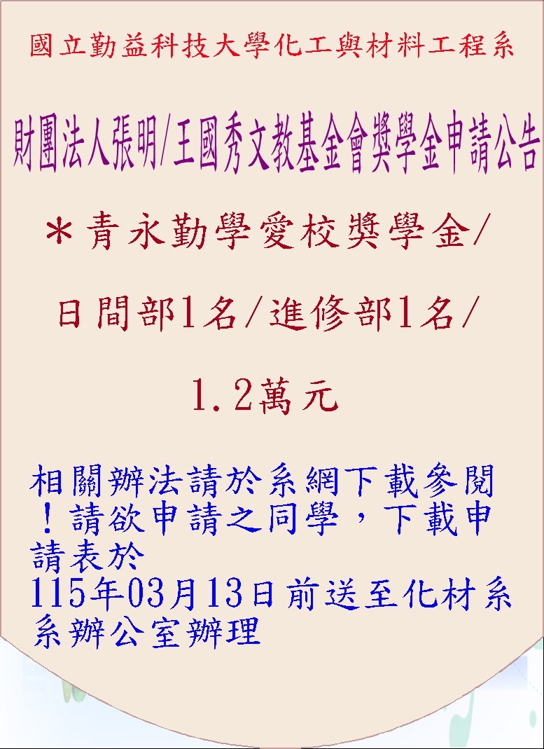 化材系獎助學金辦法