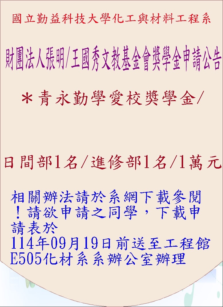 財團法人張明王國秀文教基金會-青永勤學愛校學生獎助學金申請公告