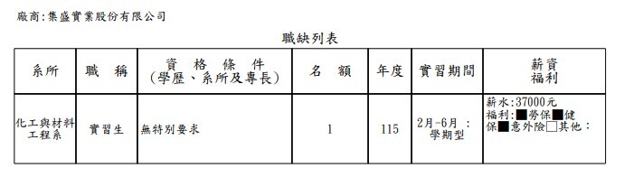 【實習徵才】114-2學期集盛實業股份有限公司(履歷投遞截止:114.12.12)
